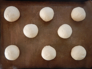 3.生地を取り出して丸め直す。乾かないように湿らせたキッチンペーパーとラップをして15分おく。