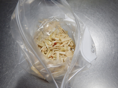 辛くしてもいいよという方は漬け汁の中に入れてください。