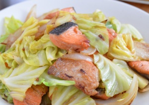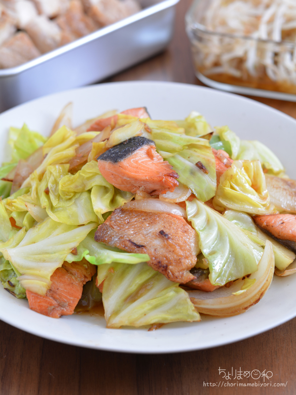 この日は鮭とキャベツ、玉ねぎをさっと炒めたものがメイン。