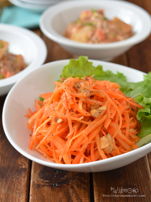 たっぷりのにんじんとシンプルにオリーブ油でマリネ。