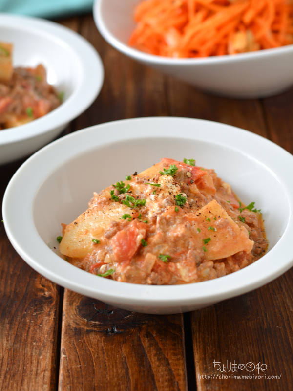 メインは合いびき肉とじゃがいものトマト煮。