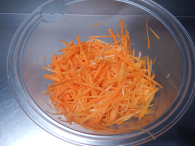 ・にんじんは千切りにする。