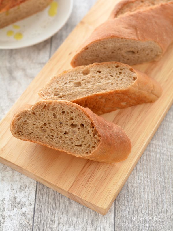 全粒粉のパンはオリーブ油と相性がとてもよいので、生地に入れるのも、つけていただくのもオリーブ油がおすすめですよ。