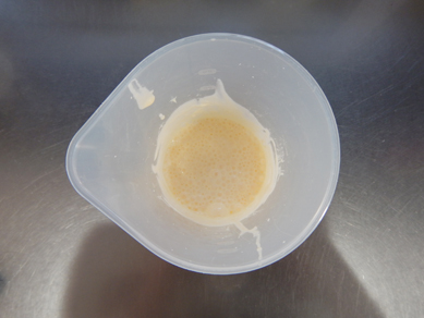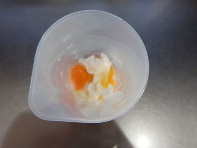 3.卵、クリームチーズを合わせてミキサーで撹拌する。