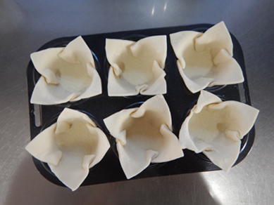 1.マフィン型にパイ生地を敷いてフォークで数か所穴をあける。