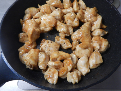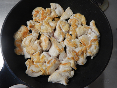 鶏むね肉に片栗粉をまぶしてジューシーさと味のからみ度をUP。