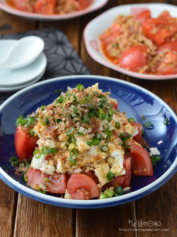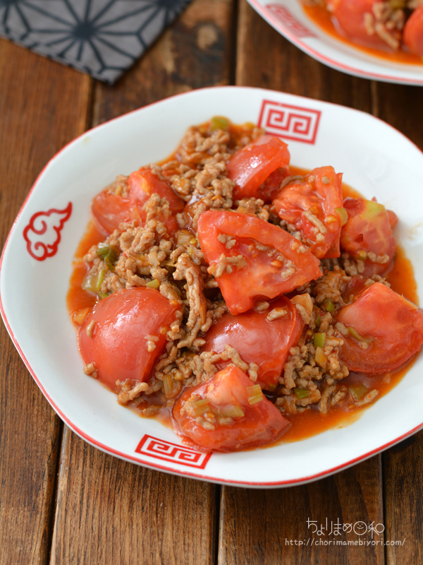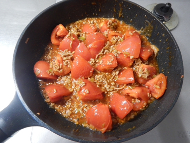 麻婆豆腐と作る手順は同じ。豆腐とトマトに置き換えてくださいね。