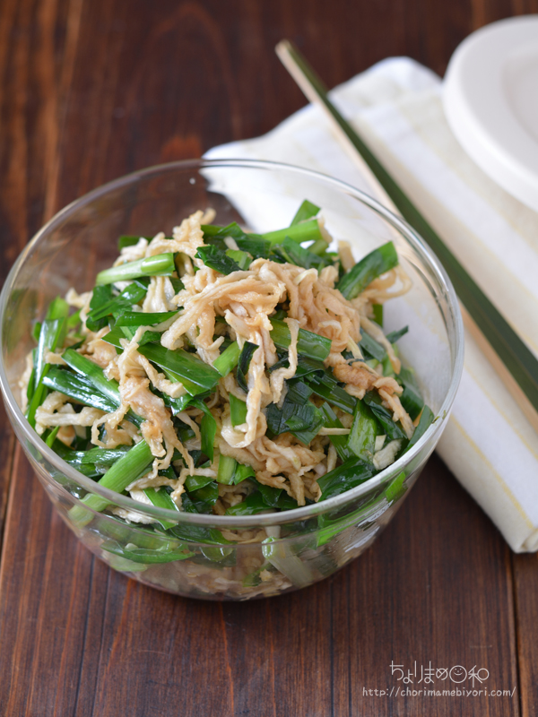 ②適当な長さに切ってしょうゆ(少々)であえて水気をしぼる。