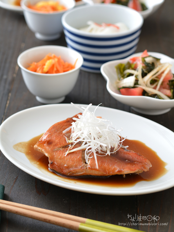 赤魚の煮付けで魚献立。