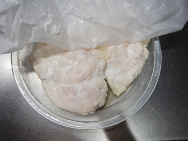 鶏むね肉は観音開き。厚さが均一になればよし!