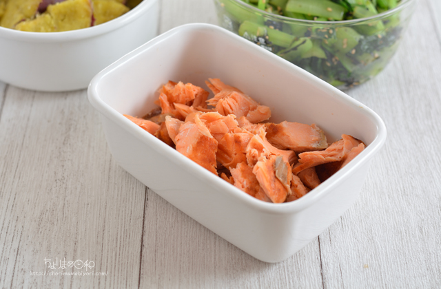 ちょりの朝ごはんは、おにぎりなので塩鮭のほぐし身が欠かせない。
