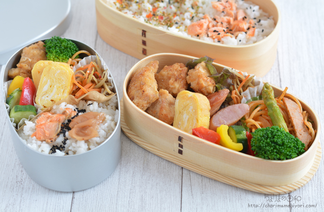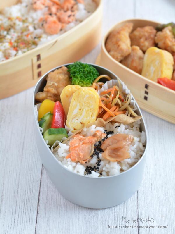 ・ごはんと塩鮭のほぐし身とふりかけOR梅干し