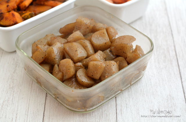 油をからめて蒸し焼きしてガラムマサラと塩で調味。
