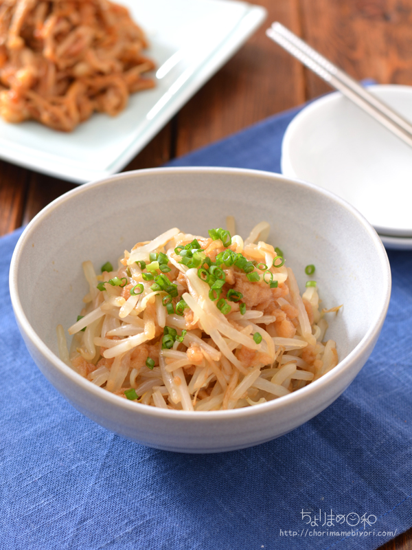 レンジで火を通したシャキシャキもやしと揚げ玉。