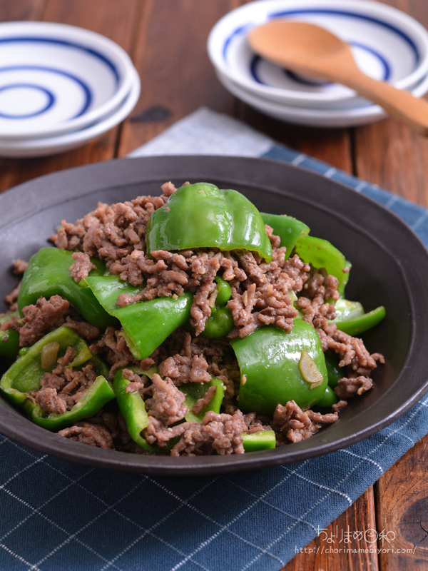 ・豚ひき肉 300g ・ピーマン 8個 ・にんにく(みじん切り) 1片分 ・油 大さじ1 A ∟しょうゆ 大さじ1 ∟みそ 小さじ2 ∟砂糖 小さじ2