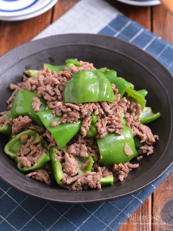 ピーマンは食感残しで、味付けしてから加えてさっと炒め。
