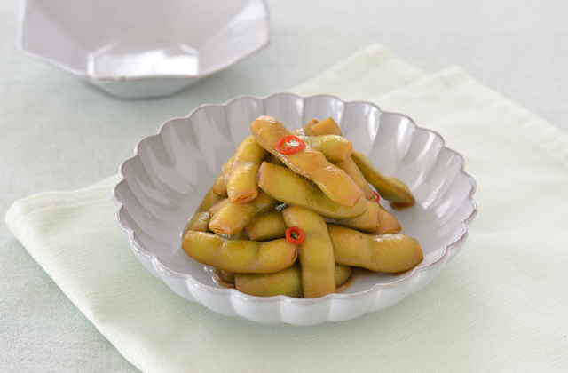 酸味のある漬け汁で枝豆を浸していただく浸し枝豆。