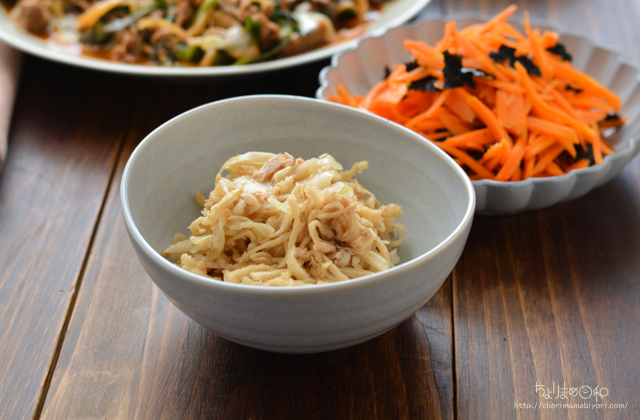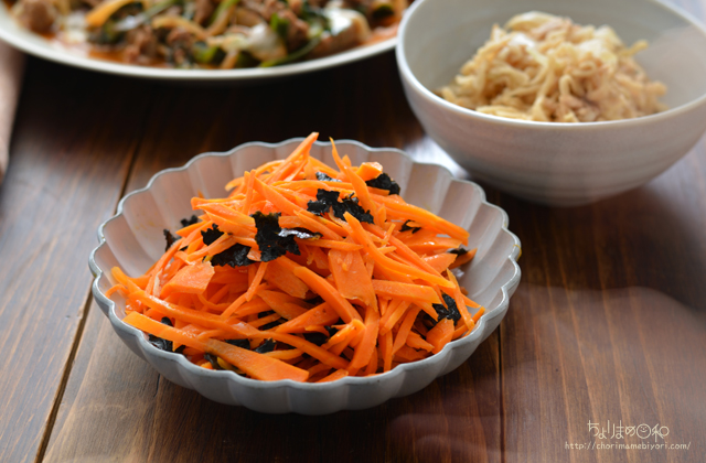 ごま油、焼きのりを散らしてナムルに。