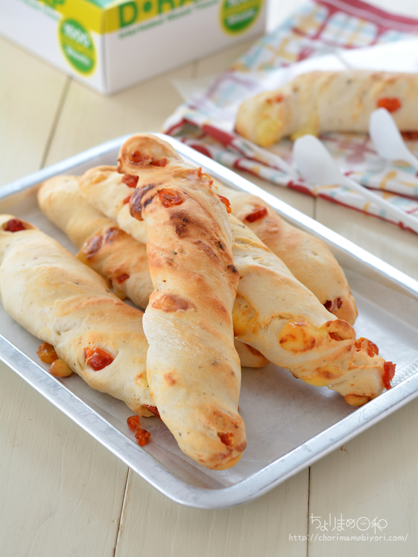 バトンのようにスティック状に成形したトッピングパン。