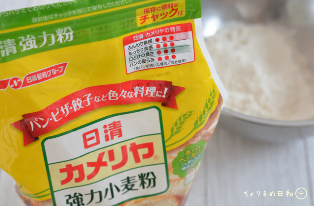 強力粉は薄力粉に比べてたんぱく質の含有量が高く、弾力性があります。