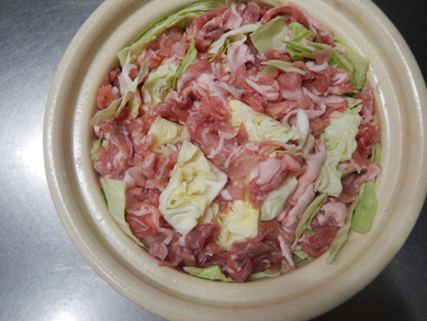 キャベツたっぷり500g。土鍋にぎゅうぎゅうに詰めましょう。