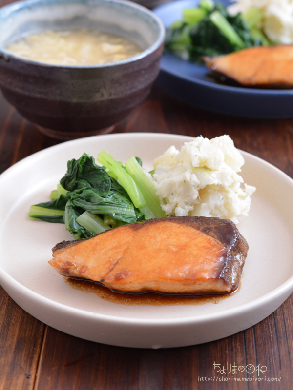 安定安定ぶりの照り焼きは、さとうきび糖使いで。とりあえず、ブリは照り焼きにすると、もんちゃんご満足の食卓になります。