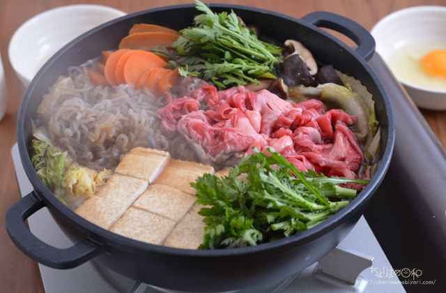 お肉屋さんで牛肉を買ったので、すき煮にしました。