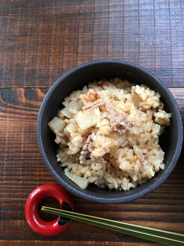 ということで朝は手早くできるこれでOK!の鍋炊き込みごはんにしました。