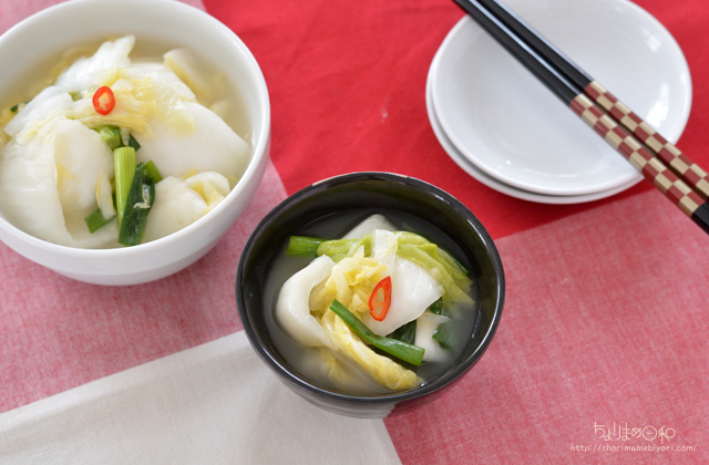 さっぱりとしてほのかな酸味のある水キムチにしました。
