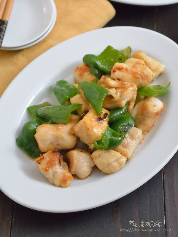 ・鶏むね肉 2枚(600g) ・ピーマン 4個 ・しょうが(みじん切り) 大1片分 ・塩 小さじ1 A ∟みりん 大さじ2 ∟柚子こしょう 小さじ2/3 ・片栗粉、油 各適量