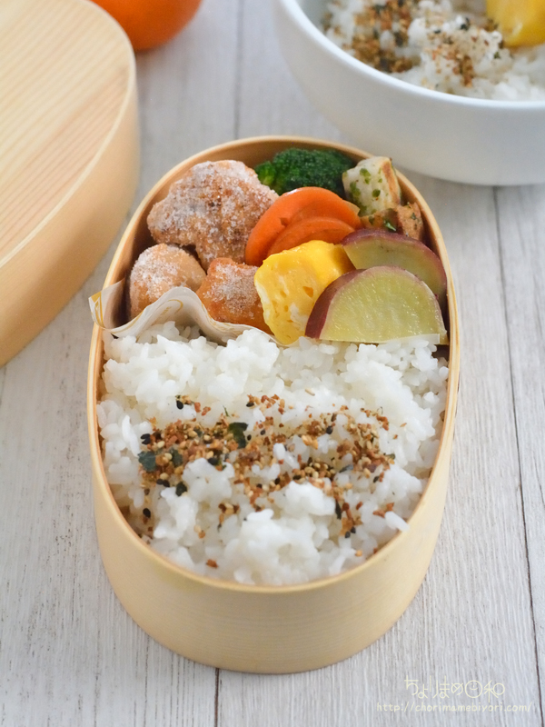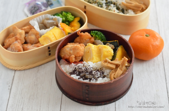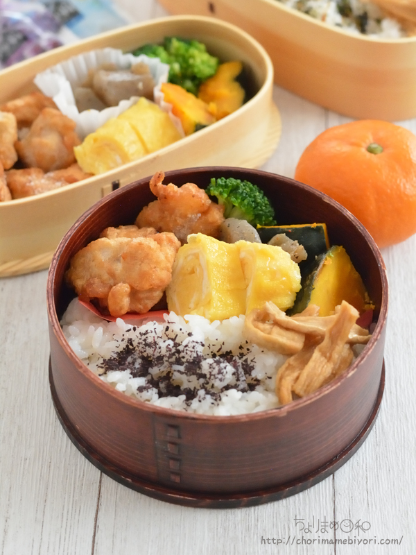 冷凍唐揚げの出番が少なくなったので(3月末からまた増えそうだけど)、JK弁当にから揚げ入れました。