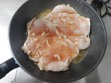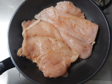 とにかく洗い物を減らしたいので、鶏肉に下味をつけるのはフライパンの中。