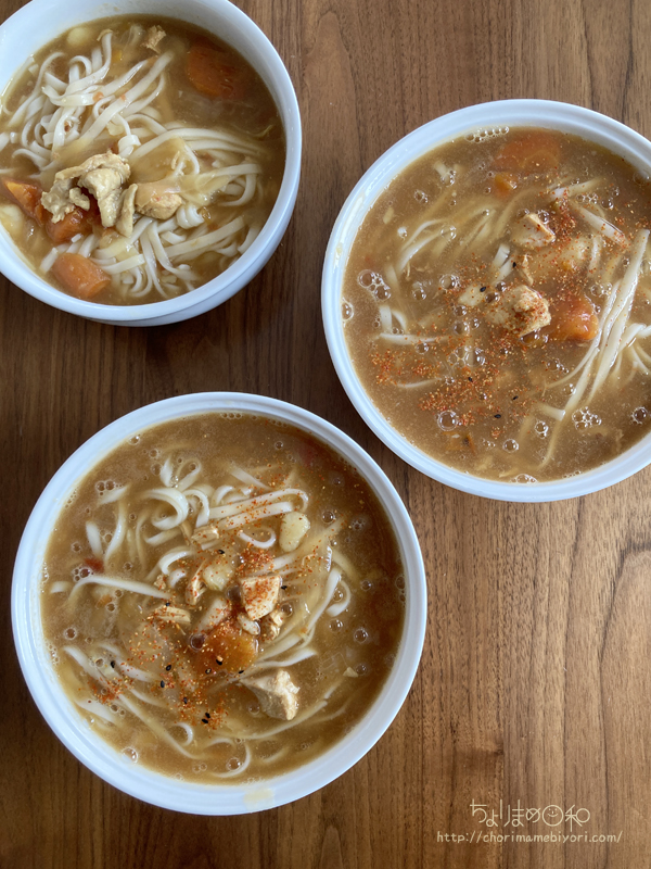 作り置きカレーの最後は白だしで割ったカレーだしつゆで。