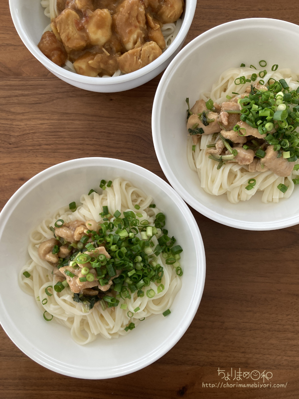 熱いと早く食べられない方がいるので、冷やしぶっかけうどんにしました。