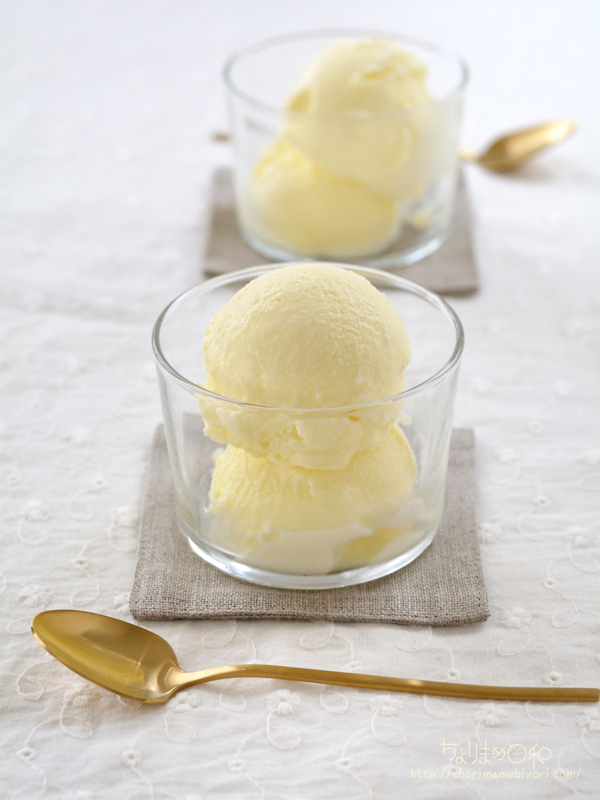 冷凍庫にしばらく滞在して、こちこちになったバターアイスは、レンジで少し加熱するとやわらかくなるので、10秒ずつ様子をみながら溶かして食べてくださいね♪