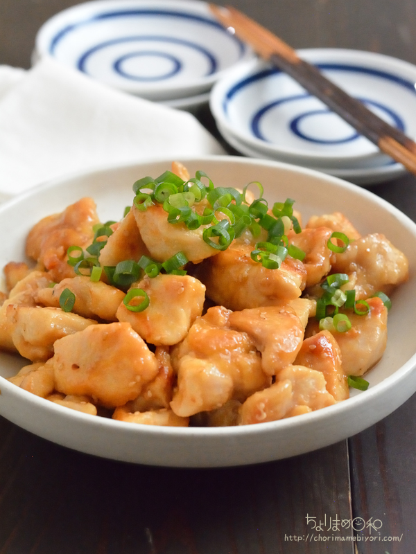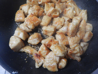 鶏肉に薄力粉をまぶすのがポイントです。