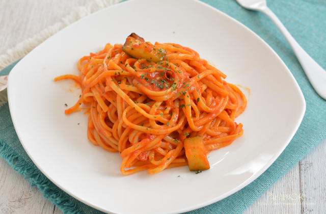 ソースの辛みがいいパスタなので、どっぷりおいしいトマトソースパスタがいただける。