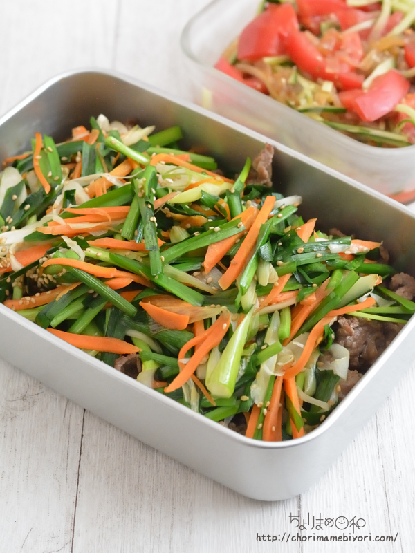 肉も野菜も一緒に摂れるうえ、ニラ、にんじんの彩りトリオが安心させる~♪