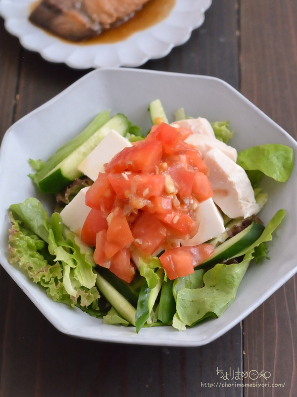 ブリ照りのお相手は具だくさんの冷奴サラダで。