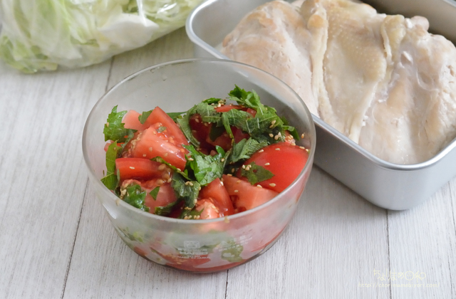 トマト、大葉の和え物。