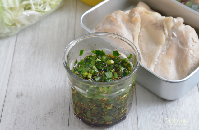ごま油、にんにく醤油、いりごまで調味。