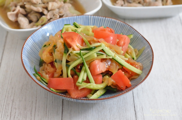 中華くらげ、トマト、きゅうり。