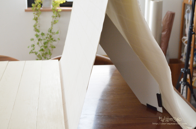 ボードの裏側についた板をひくだけで簡単に背景撮影が可能になるんです。