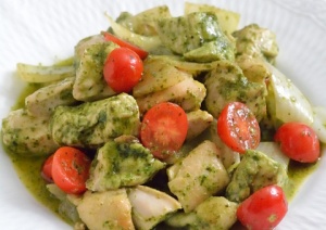 ジェノバソースにフレッシュのトマトを組み合わせるのが好き。
