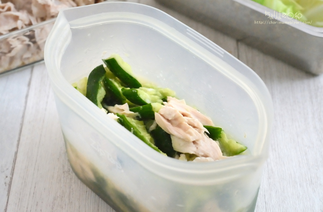 残っただし鶏、たたききゅうりを漬けて完成。