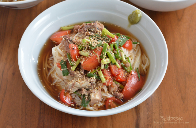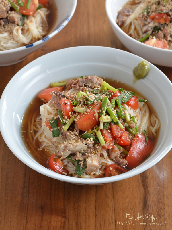 ひやむぎでぶっかけ麺。