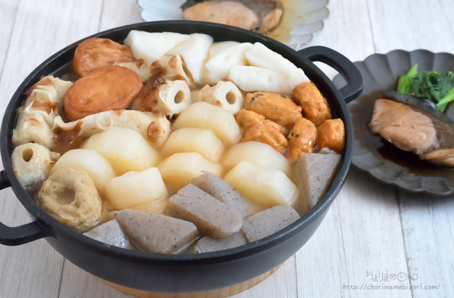 そして練り物中心じゃなくて、やたらこんにゃくと大根が目立つ我が家のおでん。(作り手の気持ち前面)