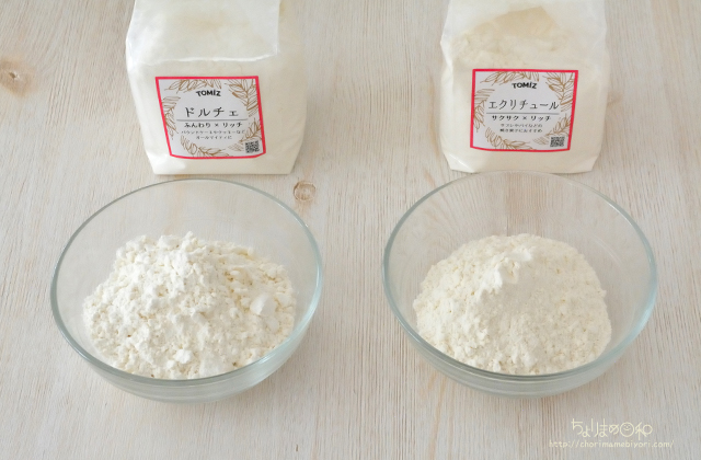 今回はお菓子でよくよく使われる薄力粉「ドルチェ」と「エクリチュール」の作り比べをしてみました。