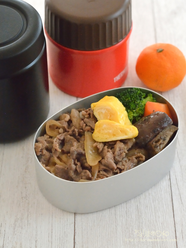 もんちゃんはスープジャー二個使用で牛丼にしました。