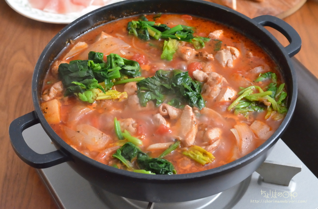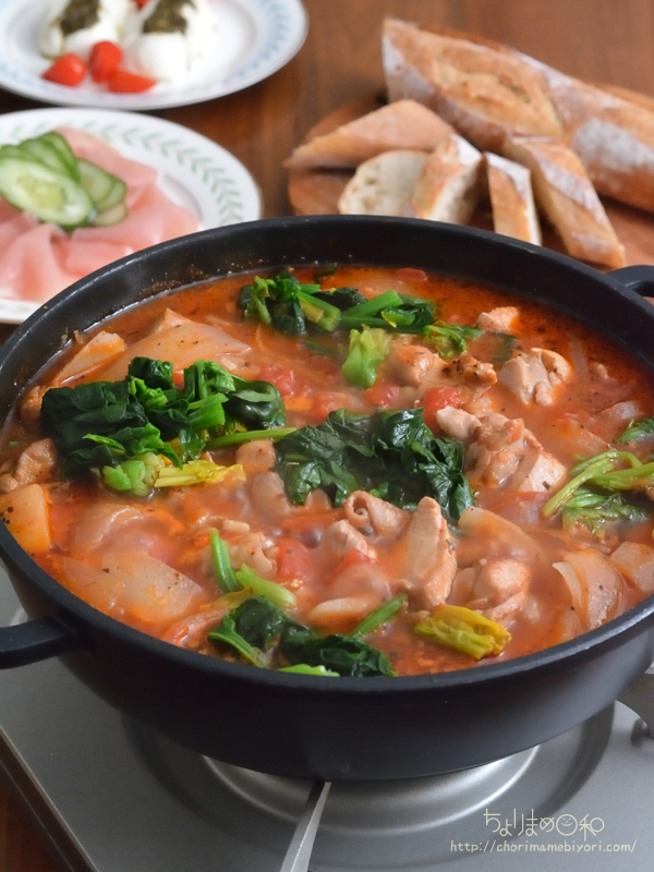 ・鶏肉がいっぱい入ったトマト鍋にしよう